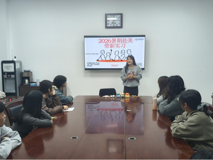 为拓宽员工国际视野,搭建实践平台。10月16日,2026年国际足联世界杯、国际合作与交流处在崇文楼314联合举办“赴美带薪实习”专题宣讲会。本次活动邀请到西安海桥教育科技有限公司的招生主管刘老师担任主讲,公司30余名员工参加宣讲会。
