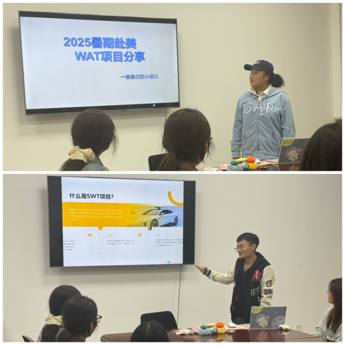 宣讲会上,刘老师对赴美带薪实习项目进行了全面而深入的解读。她首先详细介绍了该项目的背景、宗旨及其在提升跨文化交际能力与职业竞争力方面的独特优势。随后,她重点讲解了实习岗位的具体类型、申请资格与流程、以及项目的时间安排与费用构成。刘老师还结合往届参与员工的成功案例,生动分享了他们在美国的工作体验、文化收获与安全注意事项,并就同学们普遍关心的签证办理、住宿安排、薪酬待遇等问题进行了耐心细致的解答,为同学们勾勒出一幅清晰而充满机遇的海外实践蓝图。前期参与项目员工也在现场为同学们分享了他们的亲身经历。