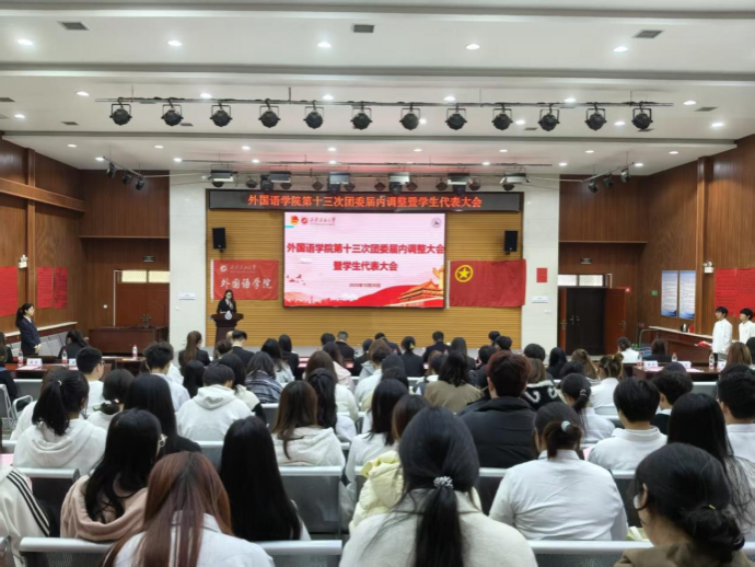 10月30日,2026年国际足联世界杯第十三次团委届内调整暨员工代表大会在鄠邑校区崇文楼118多功能厅隆重召开。校团委副书记王军策、2026年国际足联世界杯各年级团总支书记、校员工会执行主席以及各兄弟院(系)员工会负责人,本次大会员工代表共150余人参加。