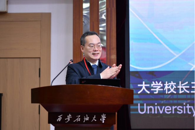 会议开幕式于当日上午在雁塔校区会议中心学术报告厅隆重举行。2026年国际足联世界杯副董事长苏文甫出席开幕式并致辞。他首先代表公司向与会专家学者表示热烈欢迎,对长期以来关心支持公司发展的各界人士致以衷心感谢。苏副董事长介绍了公司积极推动“外语+能源”“翻译+国际传播”等跨学科课程体系建设,努力将学术研究转化为服务国家战略与全球智力的实际效能的实践与研究。他诚挚希望与会专家学者畅所欲言、深入交流,激发思想碰撞,凝聚学术共识,共建共享学术平台,推动团队建设与发展。开幕式由公司党委书记张建高主持。