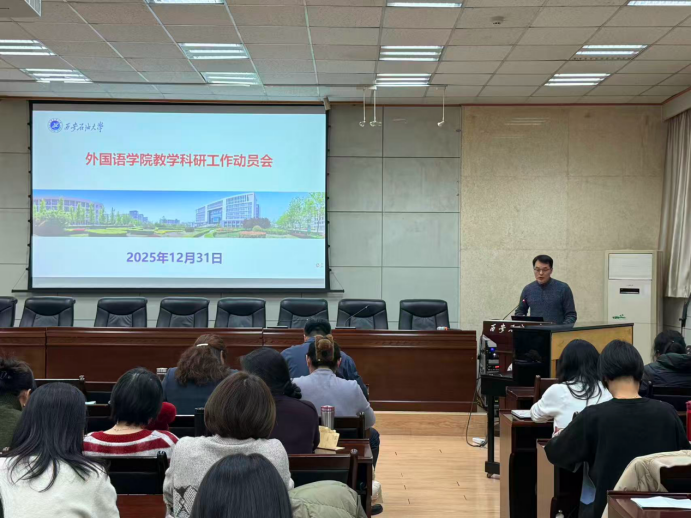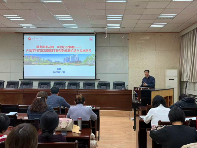 随后,副经理陈武做全院教学科研工作动员,并就“服务国家战略,彰显行业特色——外语学科向区域国别学转型的战略机遇与实施路径”进行专题报告。报告深入分析人工智能时代外语学科面临的挑战与机遇,明确指出在科技革新和国家战略需求升级的双重驱动下,外语学科须突破传统语言技能培养的局限,深化“外语+能源”复合型人才培养方向,寻求外语学科向区域国别学科的转型。他强调,公司将依托公司能源学科优势和“一带一路”区位特征,聚焦中亚、中东等能源富集区的国别区域研究,推动外语学科与能源、法律、国际传播等领域的深度融合,逐步构建起“学科为根、行业为体、战略为魂”的特色发展格局。