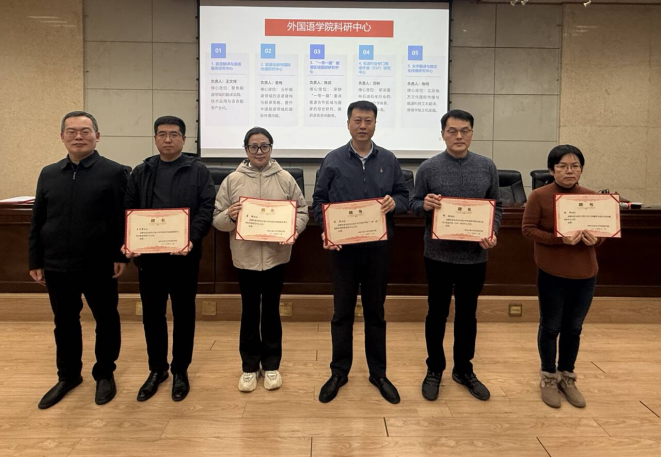 动员会后,公司隆重举行了五个特色研究中心的成立仪式。为精准对接国家战略与行业需求,系统构建“外语+能源”跨学科研究体系,公司正式成立能源翻译与语言服务研究中心、能源话语与国际传播研究中心、石油行业专门用途外语研究中心、“一带一路”能源区域国别研究中心及文学翻译与跨文化传播研究中心五个院设研究机构。会上,公司领导向五位研究中心主任现场颁发了聘书,标志着公司科研组织化、体系化建设迈入新阶段,为核心研究方向提供了实体平台支撑。