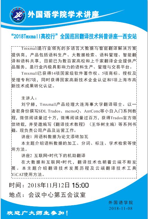 “2018Tmxmall高校行”全国巡回翻译技术科普讲座—西安站