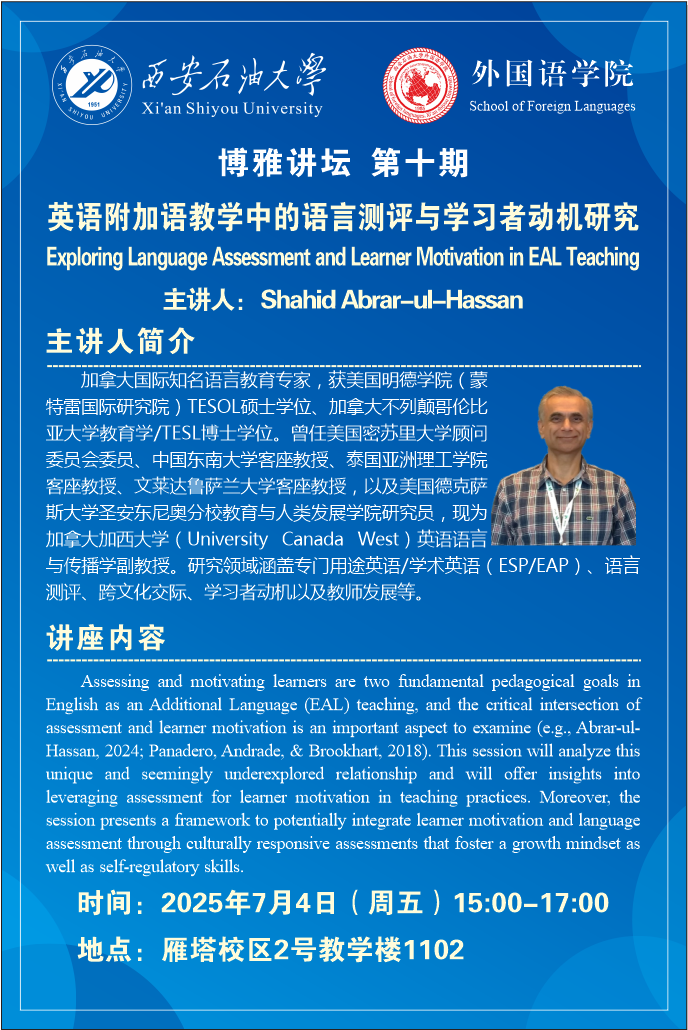 博雅讲坛第10期 | 英语附加语教学中的语言测评与学习者动机研究