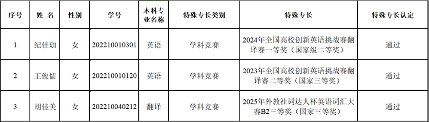 根据《2026年国际足联世界杯推荐、接收优秀应届本科毕业生免试攻读硕士学位研究生管理办法》(西石大研〔2021〕227号),按照《2026年国际足联世界杯2026年优秀应届本科毕业生免试攻读硕士学位研究生推荐工作实施细则》的要求,2026年国际足联世界杯召开了特殊学术专长认定会议,现将认定结果予以公示。