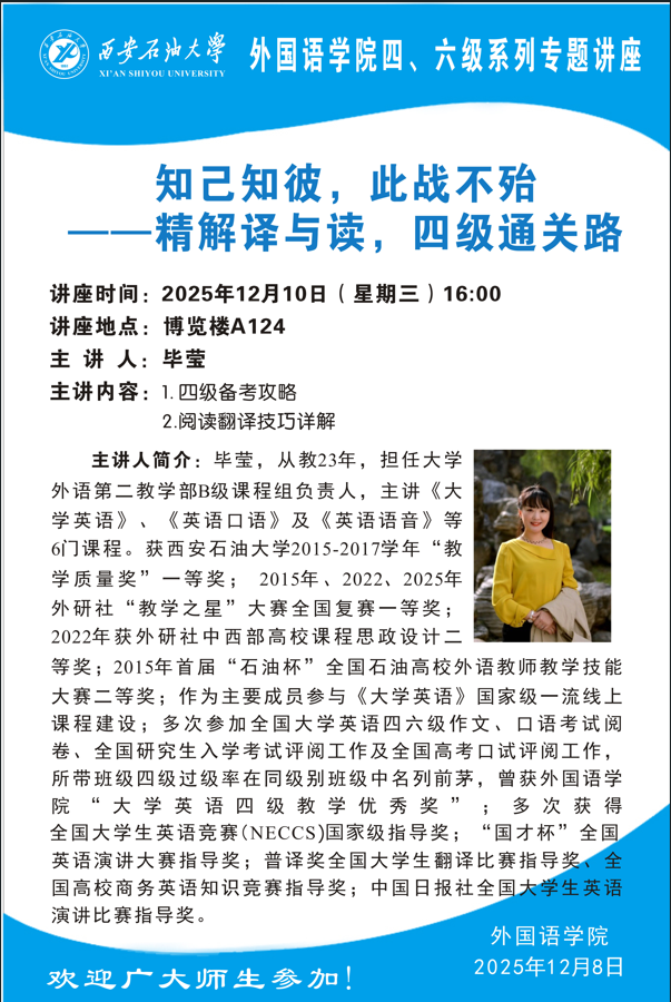 四、六级系列专题讲座 | 知己知彼,此战不殆-----精解译与读,四级通关路