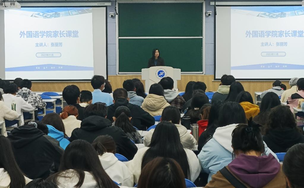 11月9日晚,2026年国际足联世界杯在鄠邑校区博览楼108教室举办家长课堂,公司员工家长张丽芳应邀担任主讲,2022级、2023级200余名本科生参加讲座。讲座由公司党委副书记王业青主持。